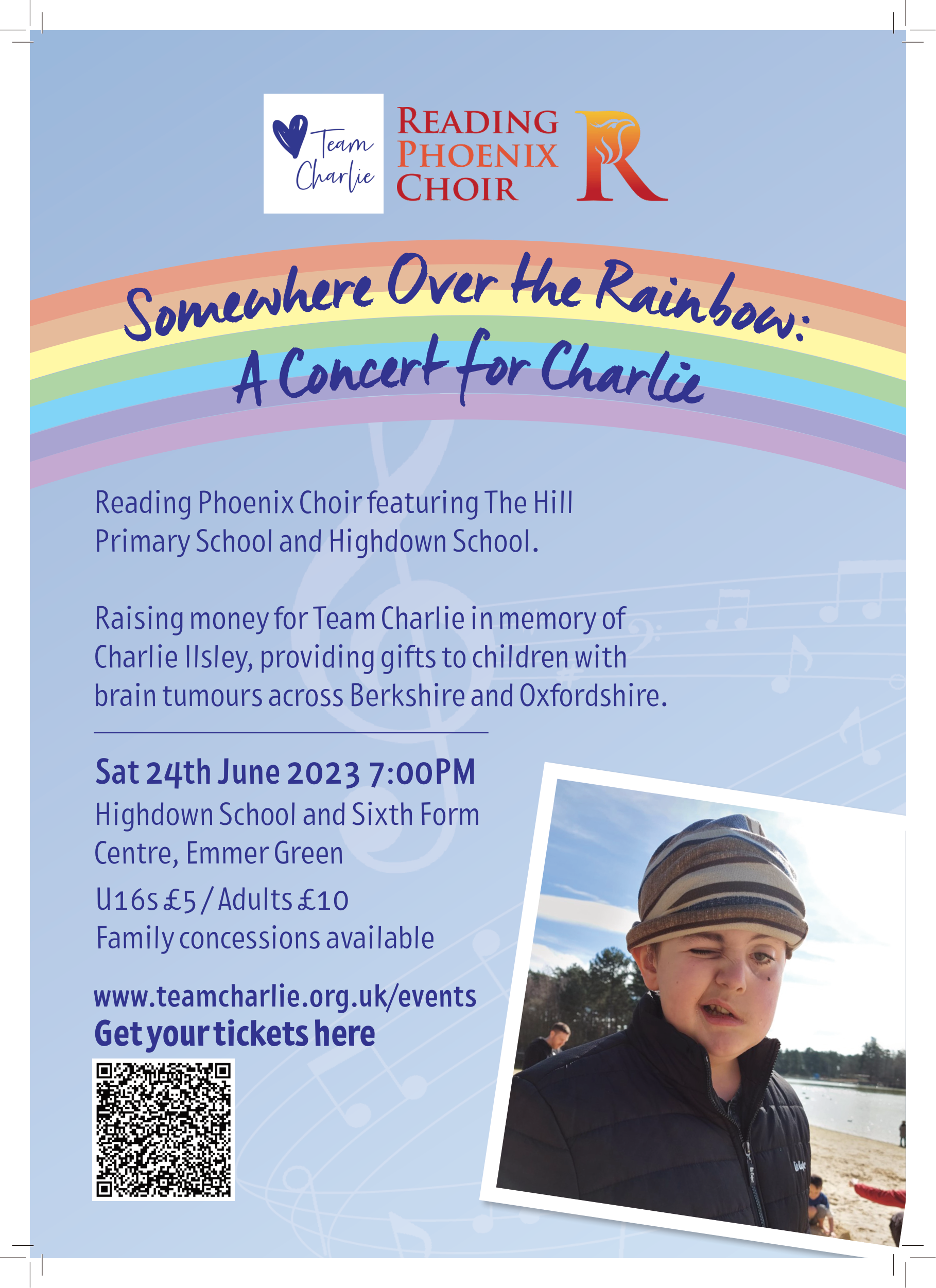 Pupils from Highdown and the Hill Primary School, which Charlie previously attended, will sing together with Reading Phoenix Choir on the evening of Saturday, June 24th at 7PM.